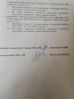 У результаті розгляду питання про проведення заходів щодо попередження та недопущення виникнення епідемії грипу та ГРВІ у закладах освіти було вирішено продовжити карантин з 10 по 14 лютого включно у: