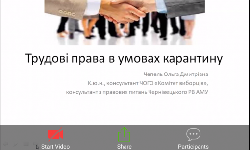 Вчора, 10 квітня, відбувся вебінар на тему “Трудові права в умовах карантину”, організований Українським народним домом та ЧОГО “Комітет виборців” на платформі для онлайн-зустрічей ZOOM.