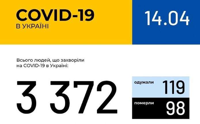 Станом на 9:00 14 квітня 2020 року в Україні 3372 лабораторно підтверджені випадки COVID-19. За добу зафіксовано 270 нових випадків. Про це пише Центр громадського здоров’я України на сторінці у Facebook.