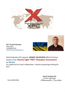 Підписав призначення президент Всесвітньої федерації XFC є Alessandro Cecchini (Рим, Італія).
