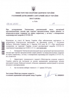 Про затвердження Тимчасових рекомендацій щодо організації торгівлі продовольчими та непродовольчими товарами