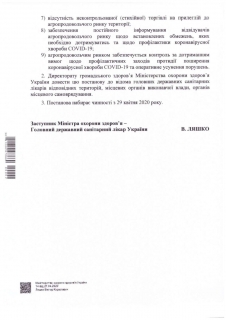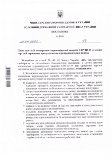 Щодо організації протиепідемічних заходів в місцях торгівлі харчовими продуктами на агропродовольчих ринках