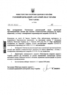 Про організацію протиепідемічних заходів при наданні стоматологічної допомоги