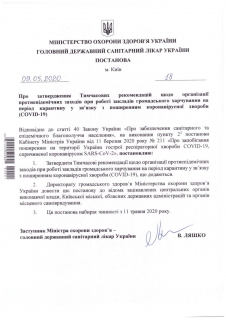 Щодо організації протиепідемічних заходів при прийманні відвідувачів у офісних приміщеннях