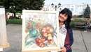 Учасниця виставки художниця Оксана Мартинюк розповідає, що представила декілька робіт. Одна з них – найновіша, вона навіть ще не встигла висохнути.