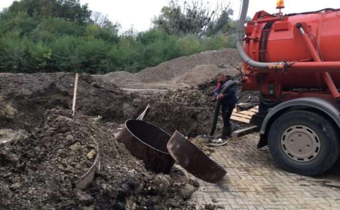 12 жовтня 2020 року за допомогою екскаватора фахівці підприємства провели роботи із підсипки основи трубопроводу гранітним щебнем, фракцією 40х20 для створення повітряної “подушки”. Після чого виконали монтаж необхідної частини трубопроводу.