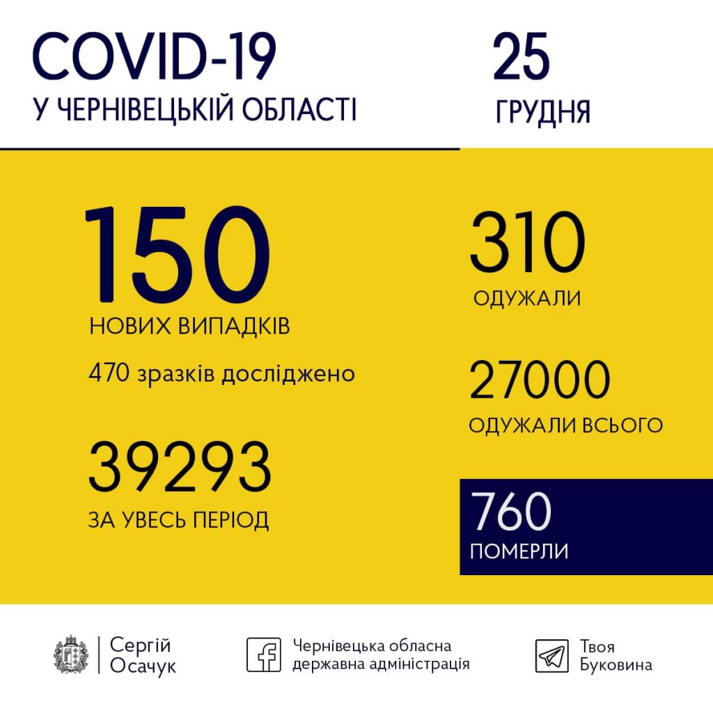 За увесь період пандемії на COVID-19 захворіли 39 293 буковинців, 27 000 – одужали, 760 – померли.