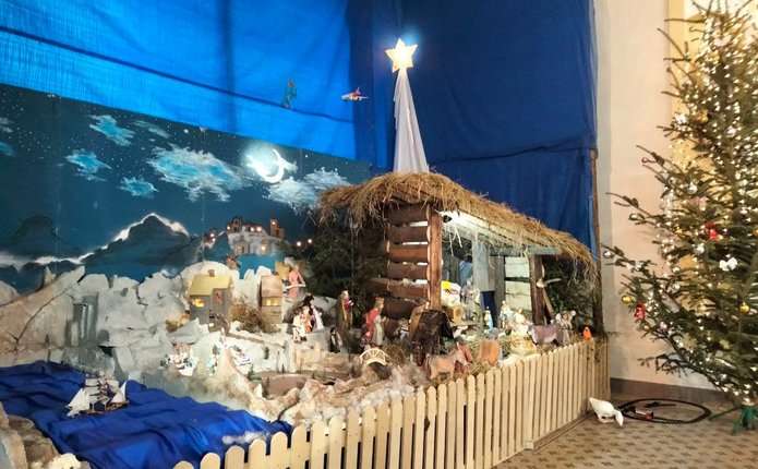 — Кожного року шопка змінюється, — розповідає отець Кшиштоф Сапальські. – Додаються нові фігури, якісь нові елементи. Цього разу у нас над шопкою літають літаки, на синьому небі світять зорі. Працює млин і навіть текла справжня вода, але потім цей механізм у нас трішки зламався. Люди щороку щось передають для вертепу. Зі Швейцарії цього разу нам передали три мініатюрні житлові будиночки, з Польщі – ковальську майстерню, у якій рухається за роботою коваль. Колією їде потяг, який сам причіпає вагон. Можна сказати, це не просто шопка, а наш світ у мініатюрі. Тут поєднаний час, у якому народився Ісус Христос, і час, в якому живемо ми: працюємо, їдемо у потягах та літаках… Тобто, світ змінився, люди багато чого освоїли, а Христос, як і раніше, приходить до людей.