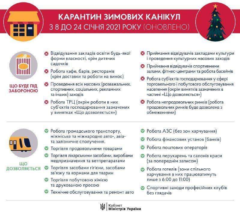Повний перелік обмежень на час локдауну від 8 до 24 січня дивіться в інфографіці.