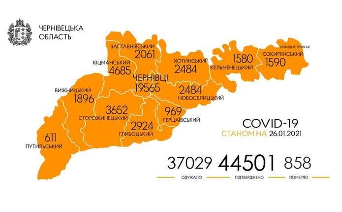 За весь період (станом на 26 січня 2021 р.) у Чернівецькій області підтверджено 44501 випадок зараження коронавірусом, повідомляє Чернівецька ОДА.
