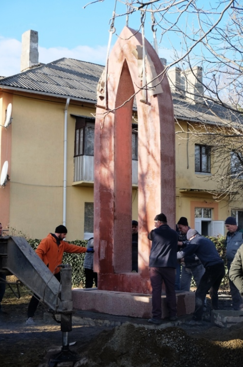 Двотонну основу і п’ятитонну стелу, виготовлену майстрами з Магали, спроектував чернівецький скульптор Анатолій Піонтковський. Кошти на виготовлення, а це майже 50 тис. грн, торік виділила Новоселицька міська рада, депутат облради, на оздоблювальні елементи збирали всім миром, ще майже 9 зібрали самі “афганці”. Вони ж виконали підготовчі роботи і встановили у четвер стелу.