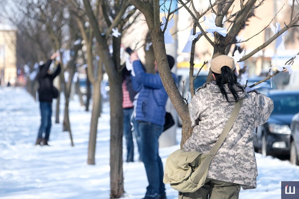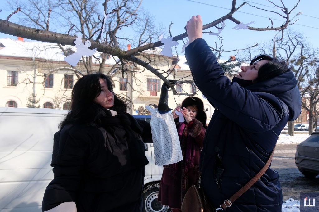 Усі небайдужі на декількох локаціях міста залишили на деревах паперових ангелів.