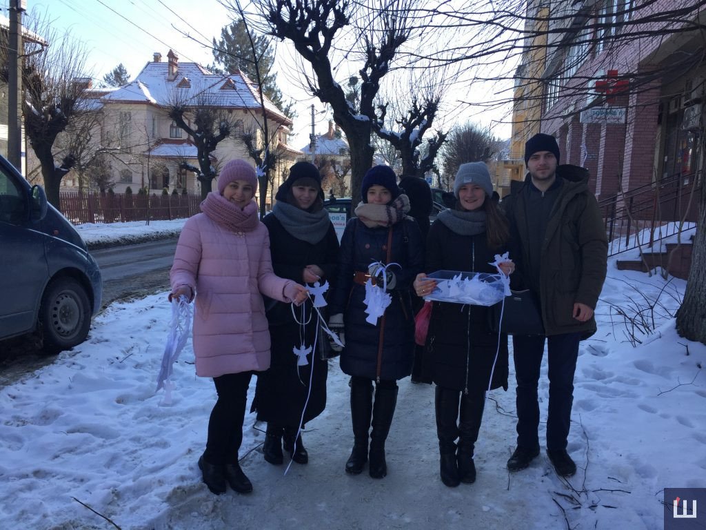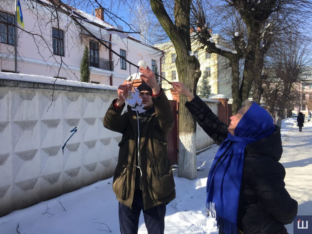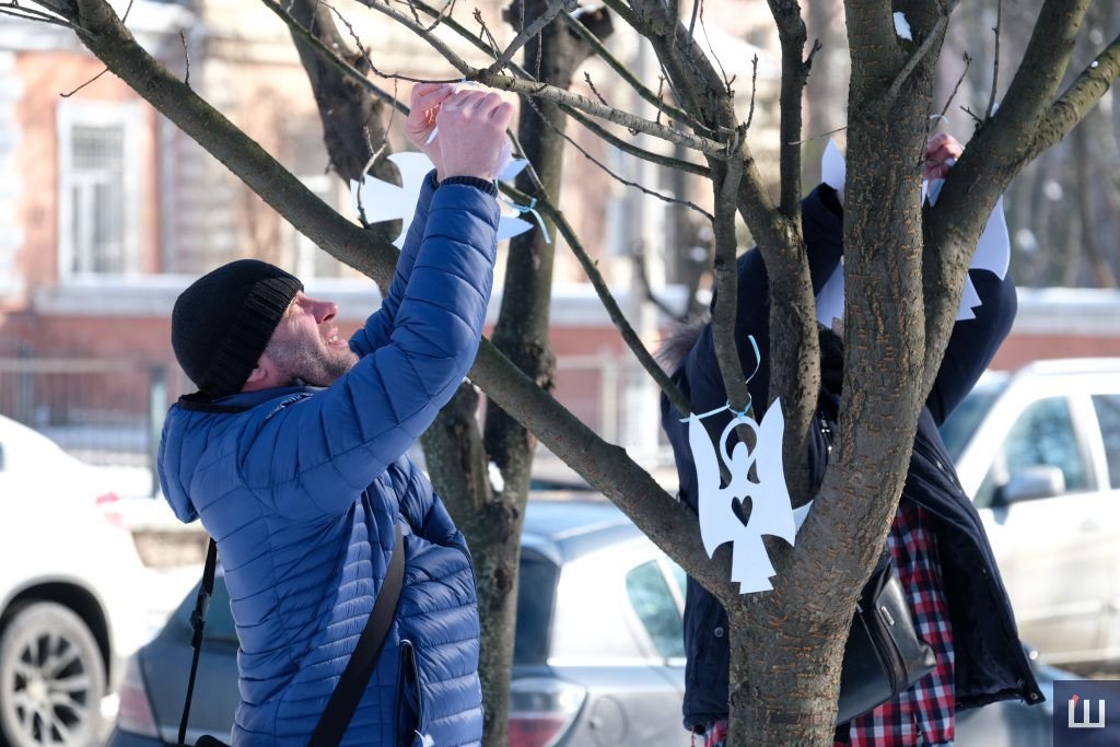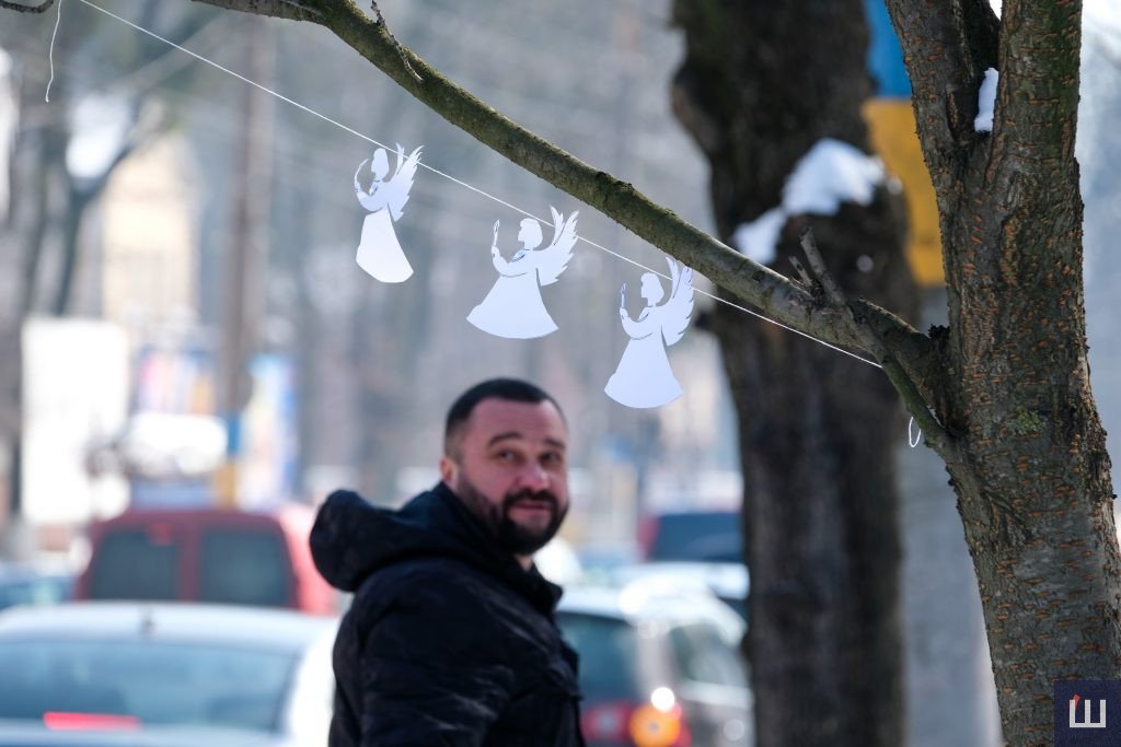 Поки учасники тихої акції розвішували ангелів, перехожі підходили і цікавилися, що це означає.