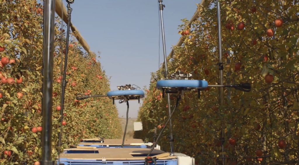 Так, декілька роботів можуть працювати разом: вони мають спільний автономний цифровий мозок у наземному блоці. Завдяки цьому з фруктового саду можуть збирати врожай, до того ж, 24 години на добу.