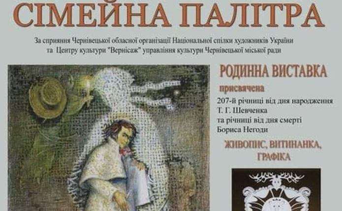 У “Вернісажі” відбудеться “Родинна виставка”, присвячена 207-ій річниці від дня народження Тараса Григоровича Шевченка та річниці від дня смерті заслуженого художника України члена Національної спілки художників України Бориса Негоди.