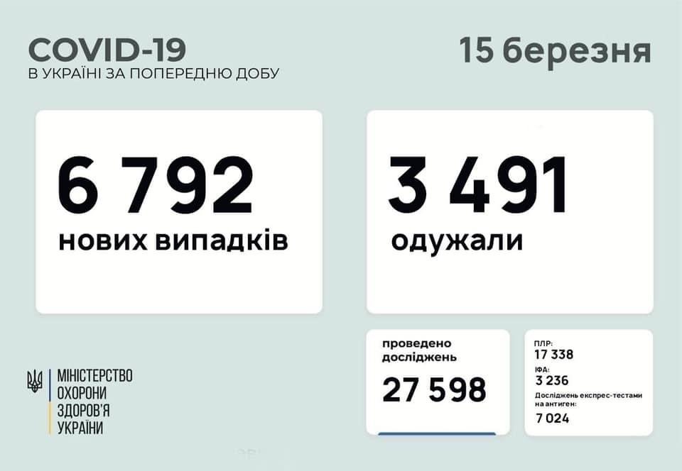 В Україні за добу зафіксували 6 792 нових випадки COVID-19, повідомив Міністр охорони здоров’я Максим Степанов. ​​​​
