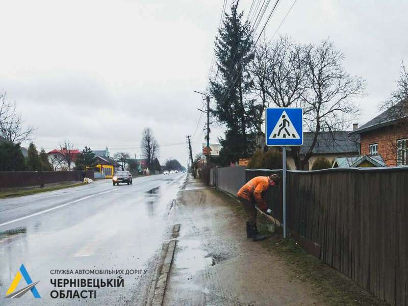 На дорогах Буковини оновлюють знаки пішохідного переходу
