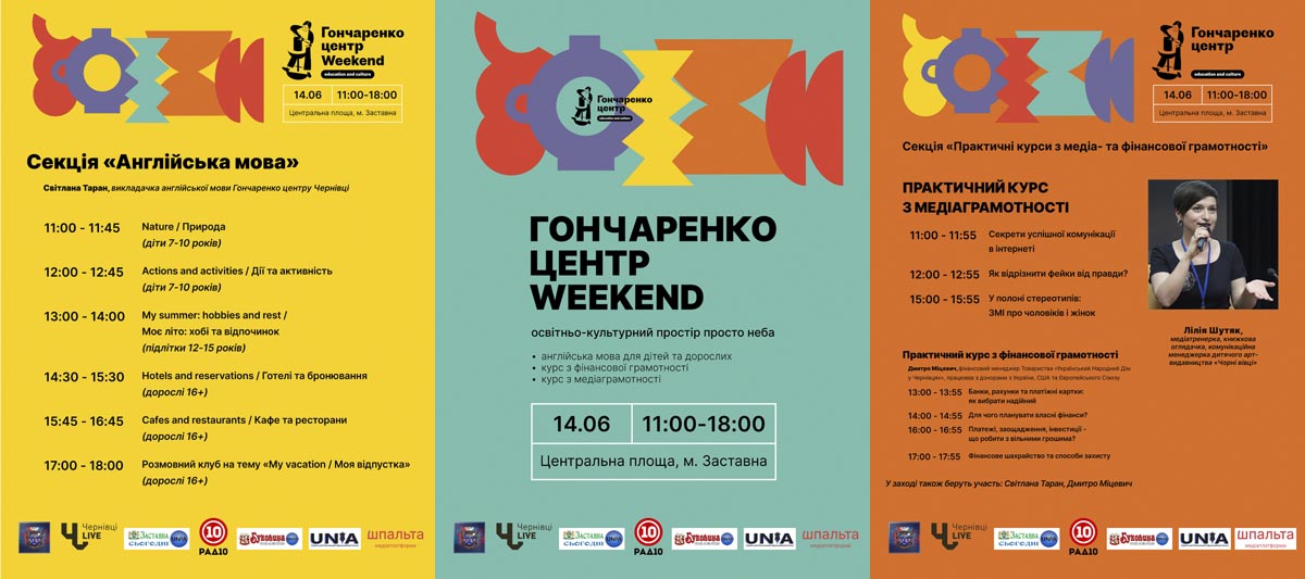 Запрошуємо Вас узяти участь в масштабному освітньо-культурному фестивалі «Гончаренко центр Weekend», який відбуватиметься 14 червня 2021 року з 11:00 до 18:00 на Центральній площі м. Заставна.