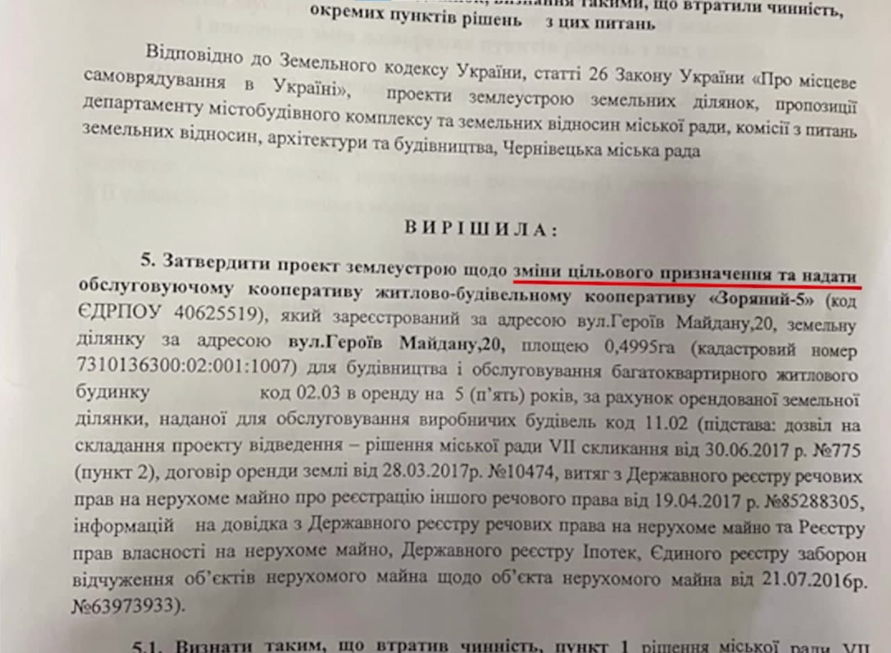 Поблизу Соборної площі, в історичному центрі Чернівців, невдовзі може з’явитися багатоповерхівка, яку збудує фірма пов’язана із заступником Чернівецького міського голови Василем Зазуляком.
