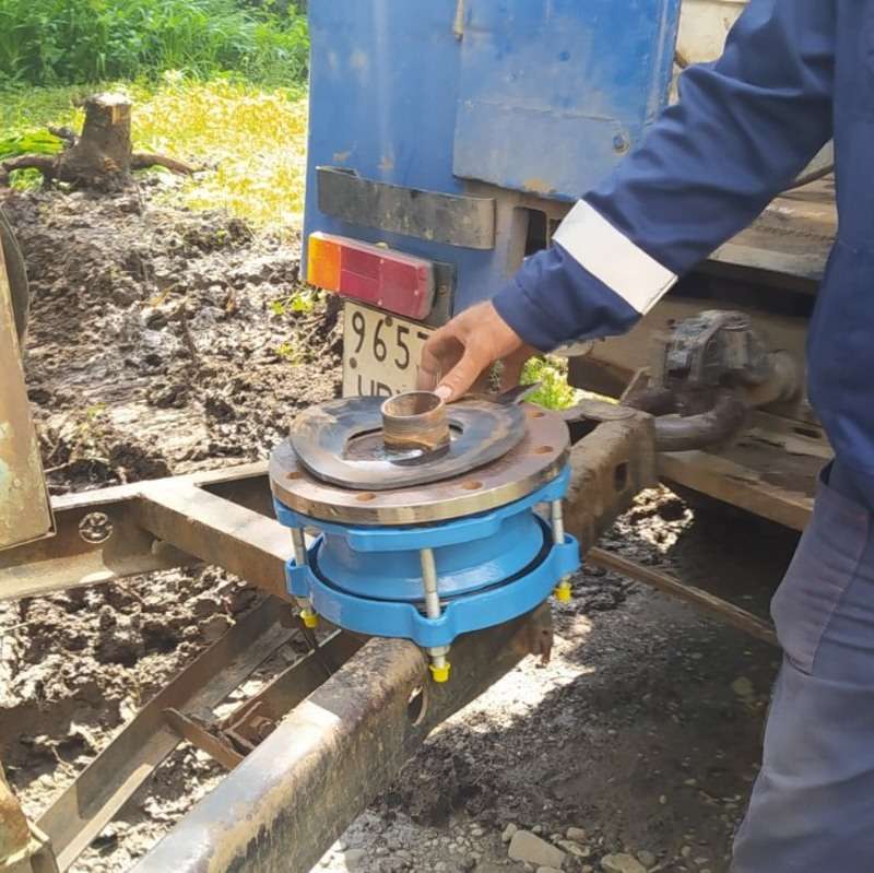 Після проведення необхідних розрахунків, якими вирахували необхідний для нової труби діаметр (щоб і тиск не знизився, і води на усіх підключених споживачів вистачило), було зроблено дві розкопки, встановлено два фланцевих адаптера, після чого протягнули новий водопровід.