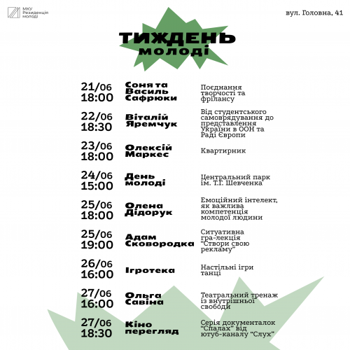 Комунальна установа «Молодіжний центр Чернівців «Резиденція молоді» з 21 по 27 червня проводить Тиждень молоді.