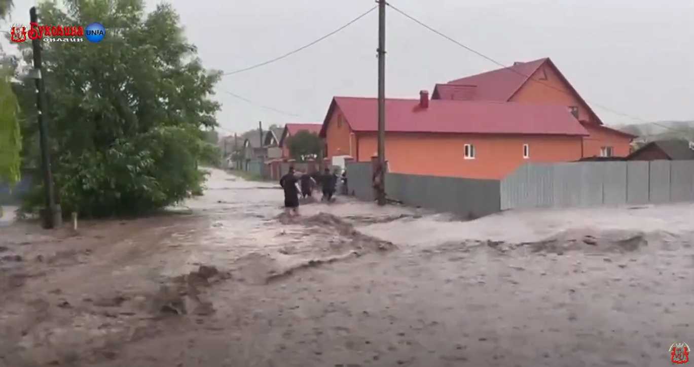Буковиною пронеслася потужна злива із грозою. Сильний дощ миттю затопив вулиці, машини та мотоцикли якими просто плавали.