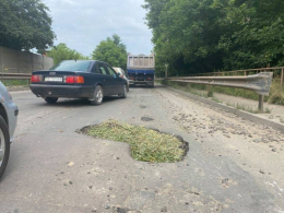 Автомобілі, які опинились на цій вулиці, намагаються обминати цю вибоїну.