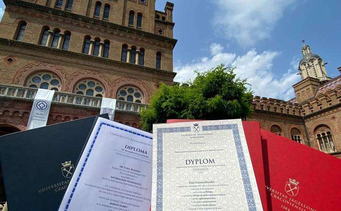 Днями шестеро студентів-філологів, які навчалися за програмою подвійних дипломів на філологічному факультеті Інституту східнослов’янської філології Кафедри україністики Яґеллонського університету – найкращого польського вишу та одного з кращих європейських університетів, отримали дипломи про закінчення магістратури. До речі, 3 дипломи ‒ це дипломи з відзнакою. Ось прізвища всіх: Романна Брездень, Наталія Лейберюк, Тетяна Грицків, Ірина Качмар, Ірина Леонтій, Наталія Шалайко.
