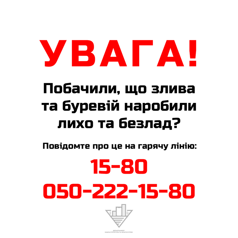 “Для того, щоб оперативно усунути негативні наслідки, спричинені негодою, просимо повідомляти про всі ситуації, що трапилися внаслідок грози. Телефонуйте або залишайте коментарі під дописом чи в приватні повідомлення”, – йдеться у повідомленні.