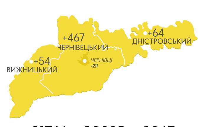 • Чернівецький район +467, із них 211 випадків – у Чернівцях