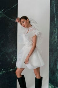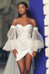 Звісно, це не так. Варто лише глянути на трендові моделі у довжині міні, щоб раз і назавжди позбутися цього упередження. Відомі світові дизайнери у 2022 році пропонують вишукані та елегантні силуети для наречених, які не бояться бути собою.