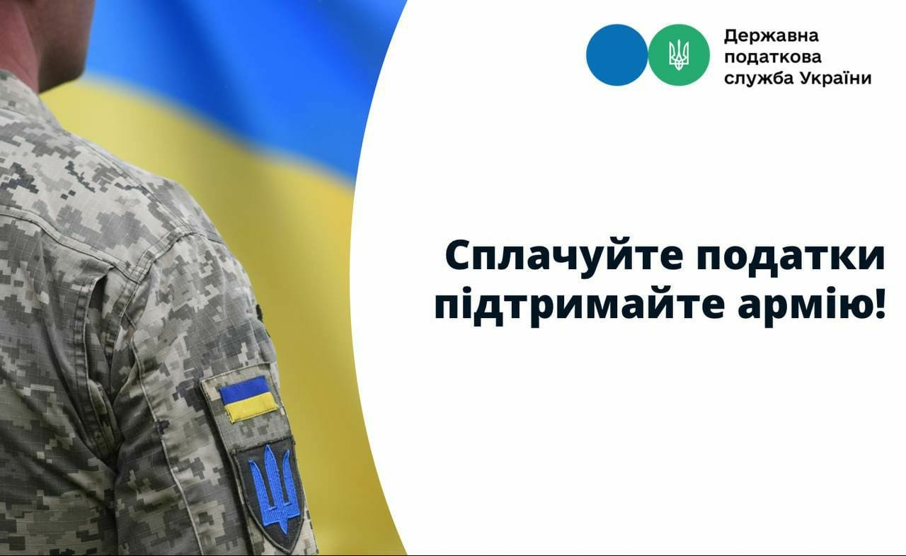 Сплата податку – це громадянський обов’язок кожного українця, з метою фінансового забезпечення діяльності держави й (або) муніципальних утворень. Державна податкова служба України, закликає юридичних осіб і фізичних осіб сплачувати податки наперед, таким чином підтримати Збройні сили України, у ці непрості часи.