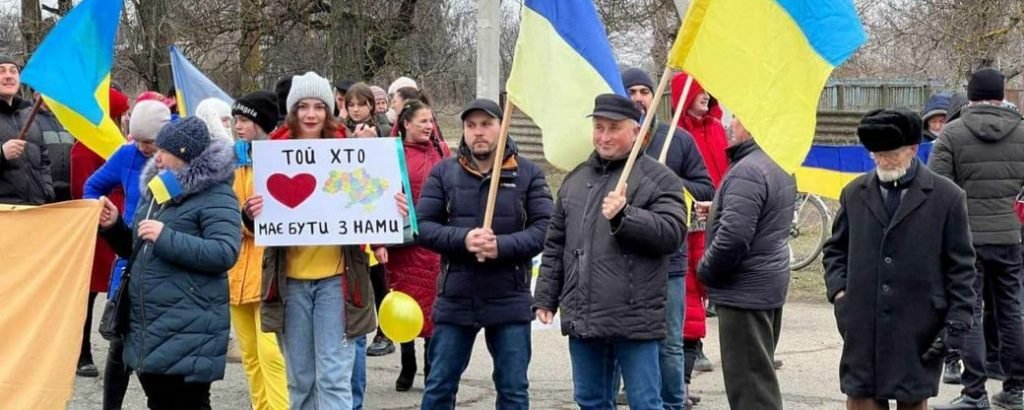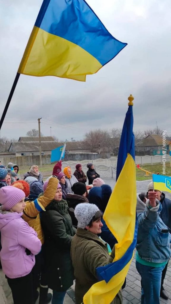 Жителі Херсона виходять на Площу Свободи щоранку. Четвертий день поспіль вони скандують окупантам. До мирних акцій долучаються не лише великі міста, а й невеличкі села.