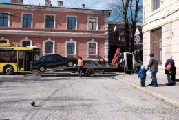 У Чернівцях евакуювали авто, яке заблокувало рух у центрі міста.