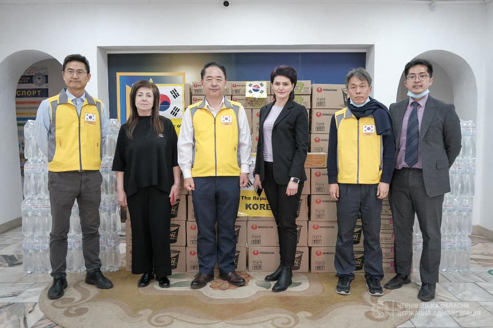 Посольство Республіки Корея передало продуктові набори переселенцям у Чернівцях. Про це повідомляють на фейсбук-сторінці Чернівецької обласної військадміністрації.