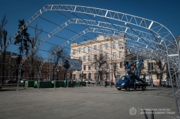 У Чернівцях на Соборній площі зводять гуманітарну базу: її роблять іспанці.