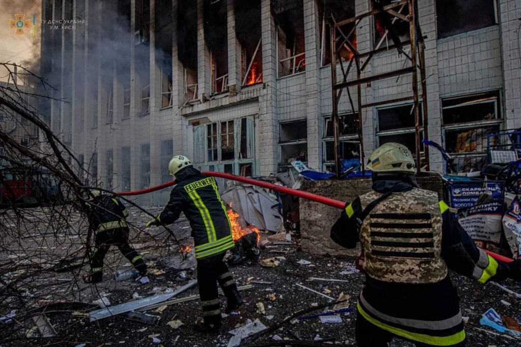 Також опівдні в Оболонському районі Києва, внаслідок ворожого обстрілу, зайнялася вантажівка та дві будівлі. Рятувальники ліквідували пожежу о 15:00. Про це повідомили в ДСНС.