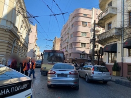 У центрі Чернівців автомобіль Ford врізався у тролейбус.