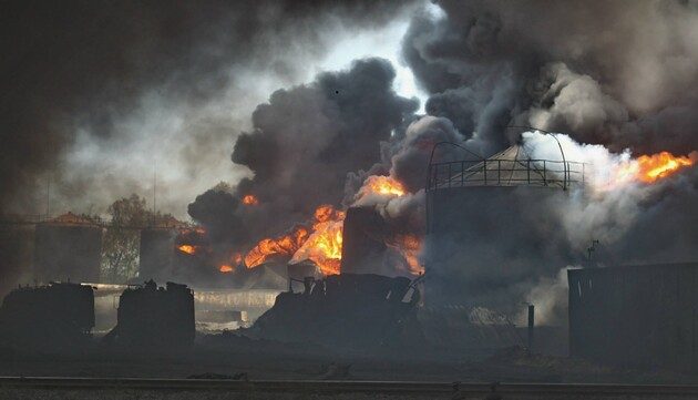 «Станом на 6:00 25 березня спостерігалося горіння залишків нафтопродуктів у межах обвалування резервуарного парку нафтобази. Загрози поширення немає», — повідомили в ДСНС.