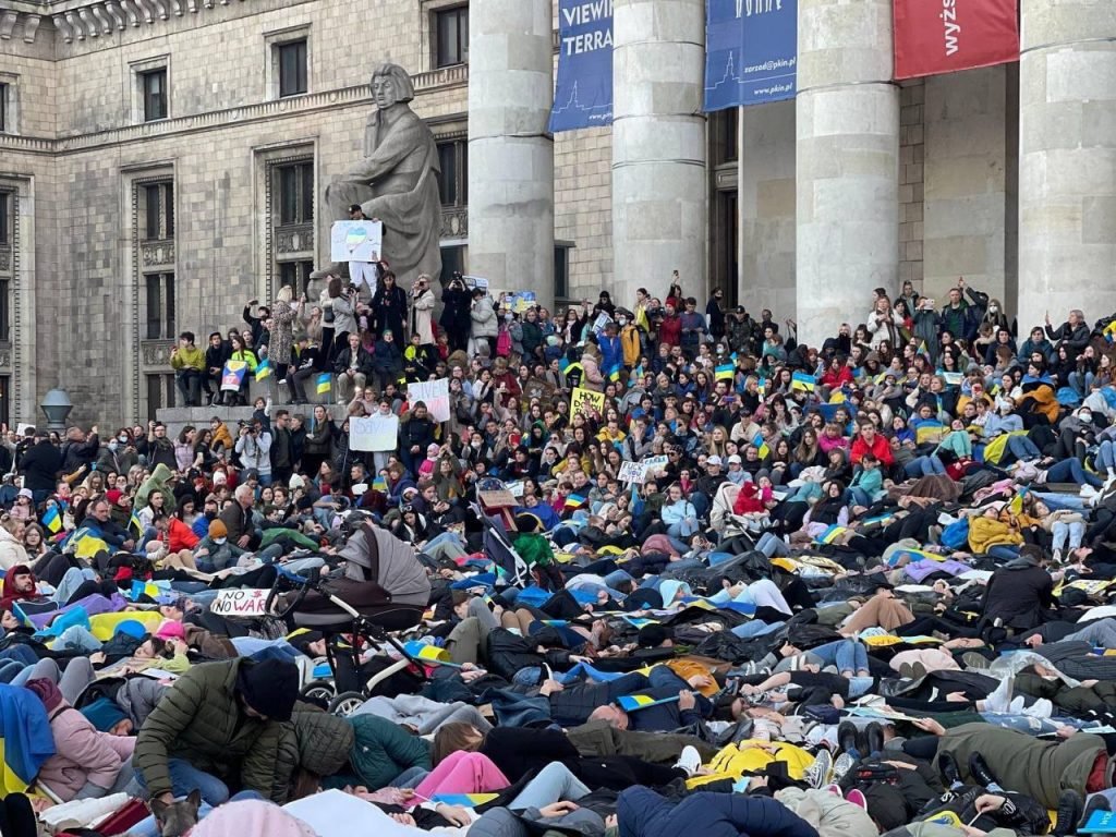 Тисячі українців у Варшаві влаштували перформанс під час мітингу — люди лягли на землю в пам’ять про мирних жителів, що загинули через агресію росії. Це сталося під час візиту президента США Джо Байдена до Польщі. Про це повідомляє ZN.UA.