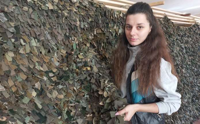 Нам необхідні риболовні сітки. Вони мають бути зі шпагату. Розмір клітинок – 2-3 сантиметри. Тканину маємо, але не відмовимося від залишків військового камуфляжу. Зайві руки не потрібні, тут приходять постійні люди. Перший тиждень-півтора було багато чернівчан. А потім, останній тиждень, вже переселенці. Тобто маємо більшість представників з Києва, Харкова.