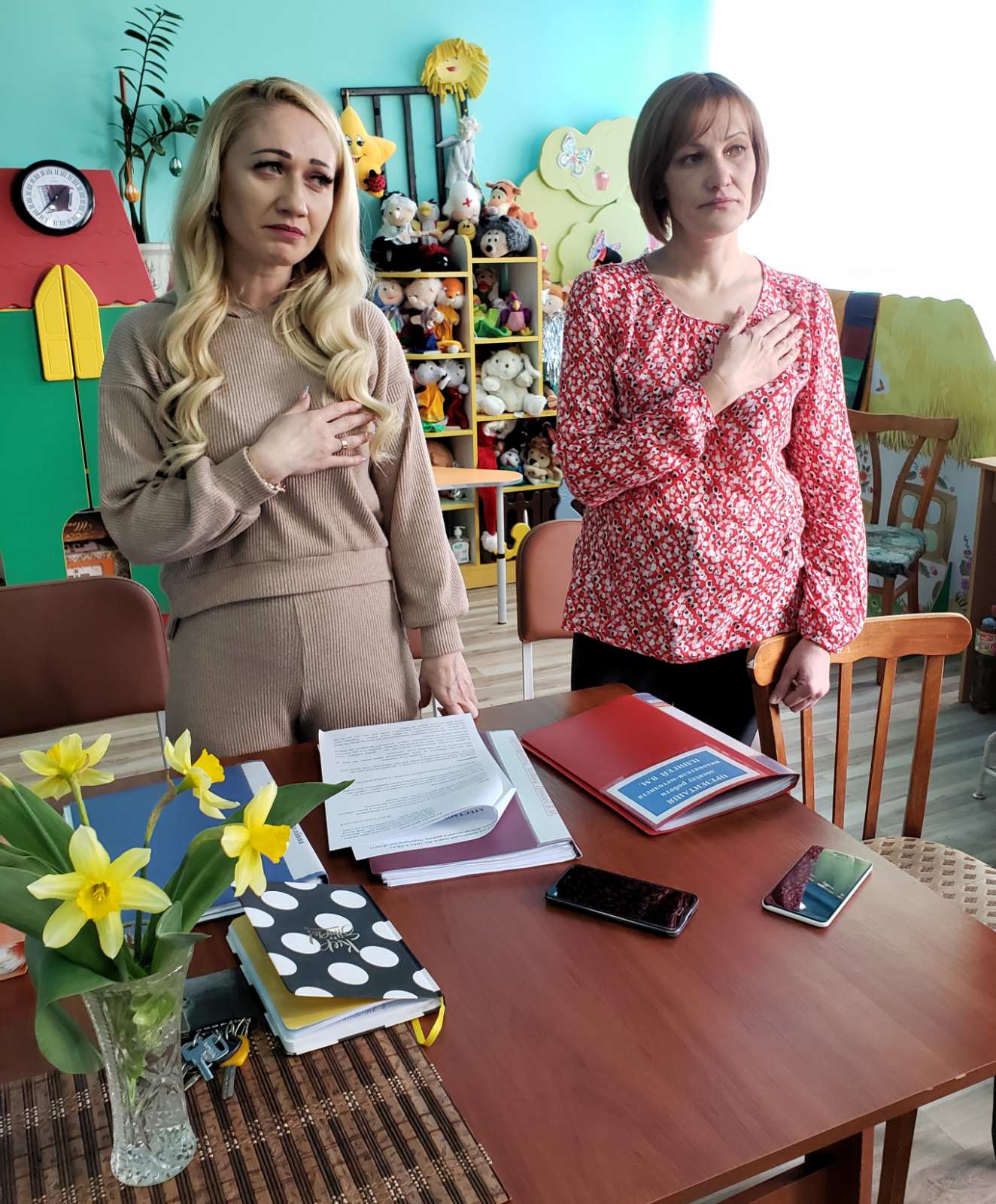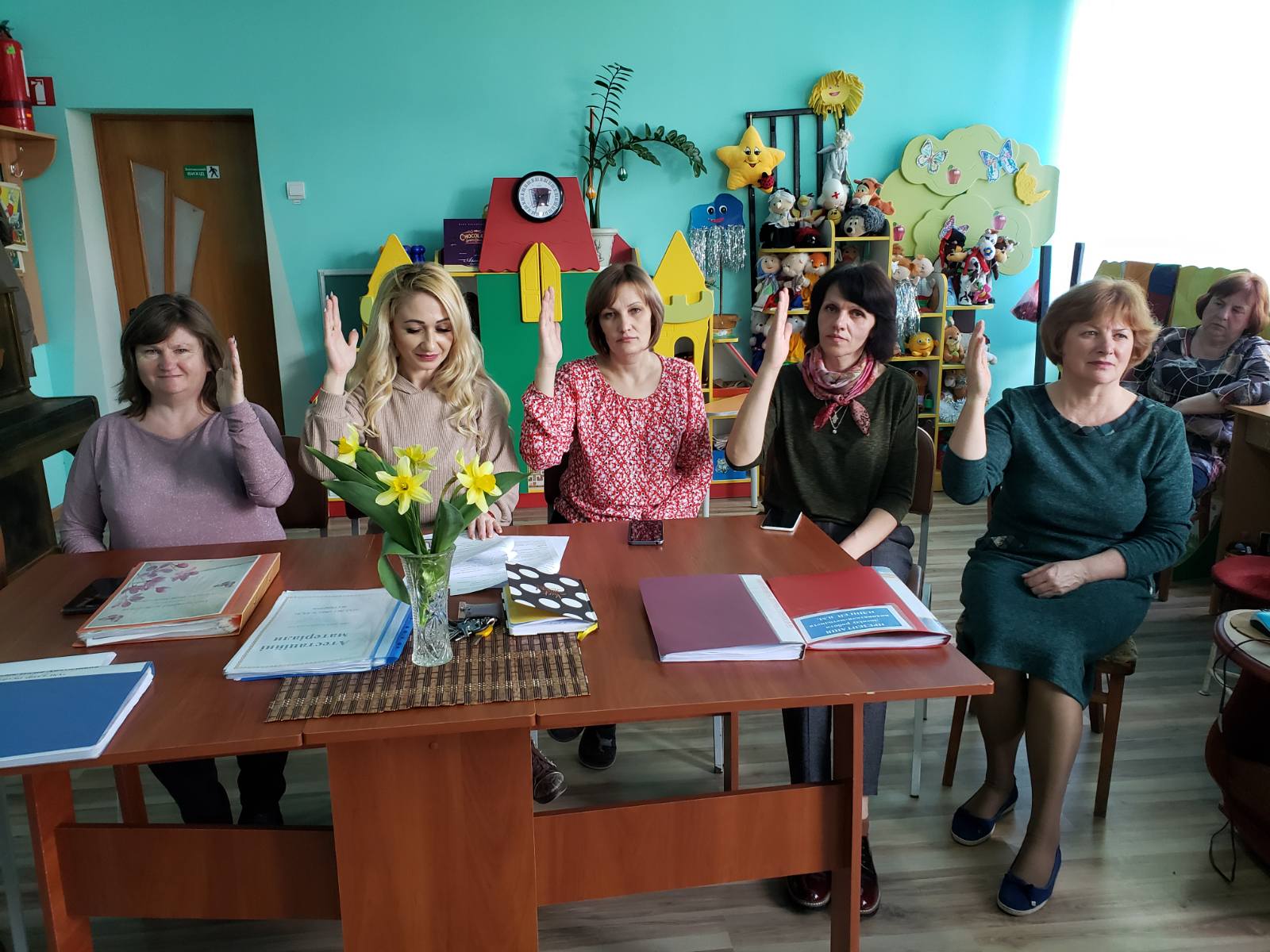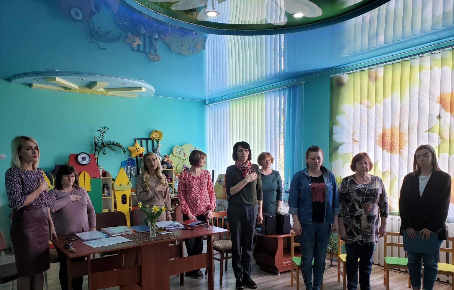 Засідання атестаційної комісії у ЗДО №1 «Веселка» м.Сокиряни цього року пройшло незвично: зі сльозами на очах педагоги співали Гімн України та хвилиною мовчання вшанували пам’ять всіх загиблих на війні за правду, за справедливість, за свободу…