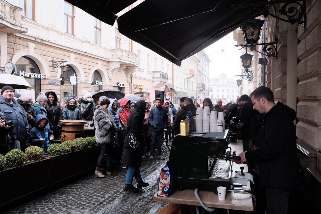 Попри вітряну та прохолодну погоду, прийшло чимало буковинців. Крім авторської кави, можна було скуштувати авторську паляницю від Євгена Клопотенка, який також брав участь у події.