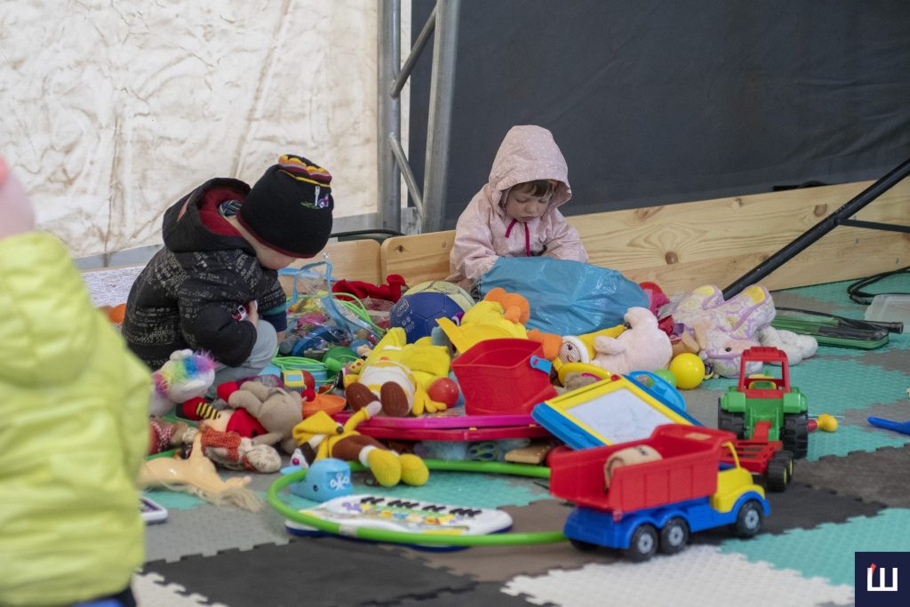 Також у таборі є спеціальна дитяча зона. Тут волонтери організовують для діток ігри та розваги, разом із малечею спускаються з гірки чи стрибають на батуті.
