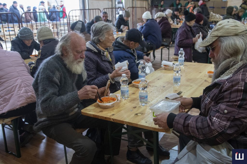 Також він розповів, що волонтерська місія годує усіх нужденних — незалежно це чернівчанин чи вимушений переселенець. Упродовж дня у так званому таборі годують понад тисячу осіб.