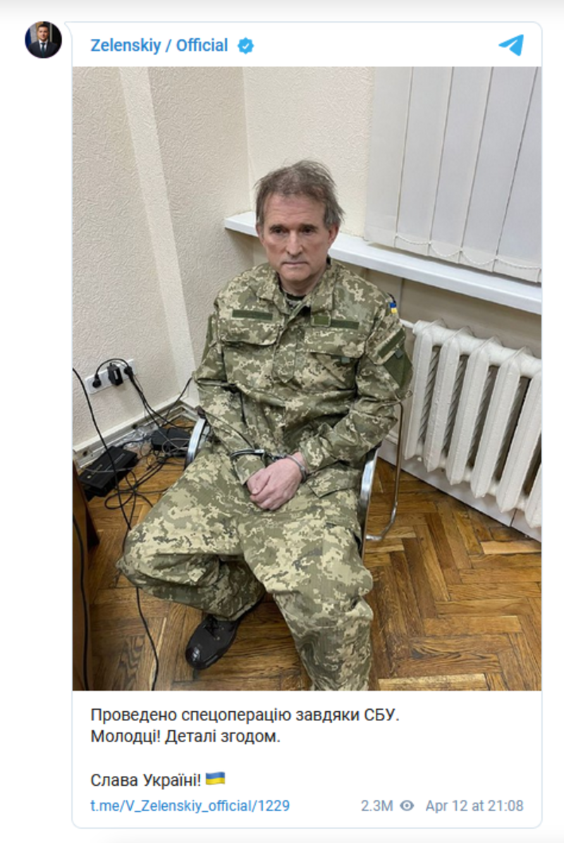 Президент України Володимир Зеленський повідомив про затримання нардепа від ОПЗЖ Віктора Медведчука.