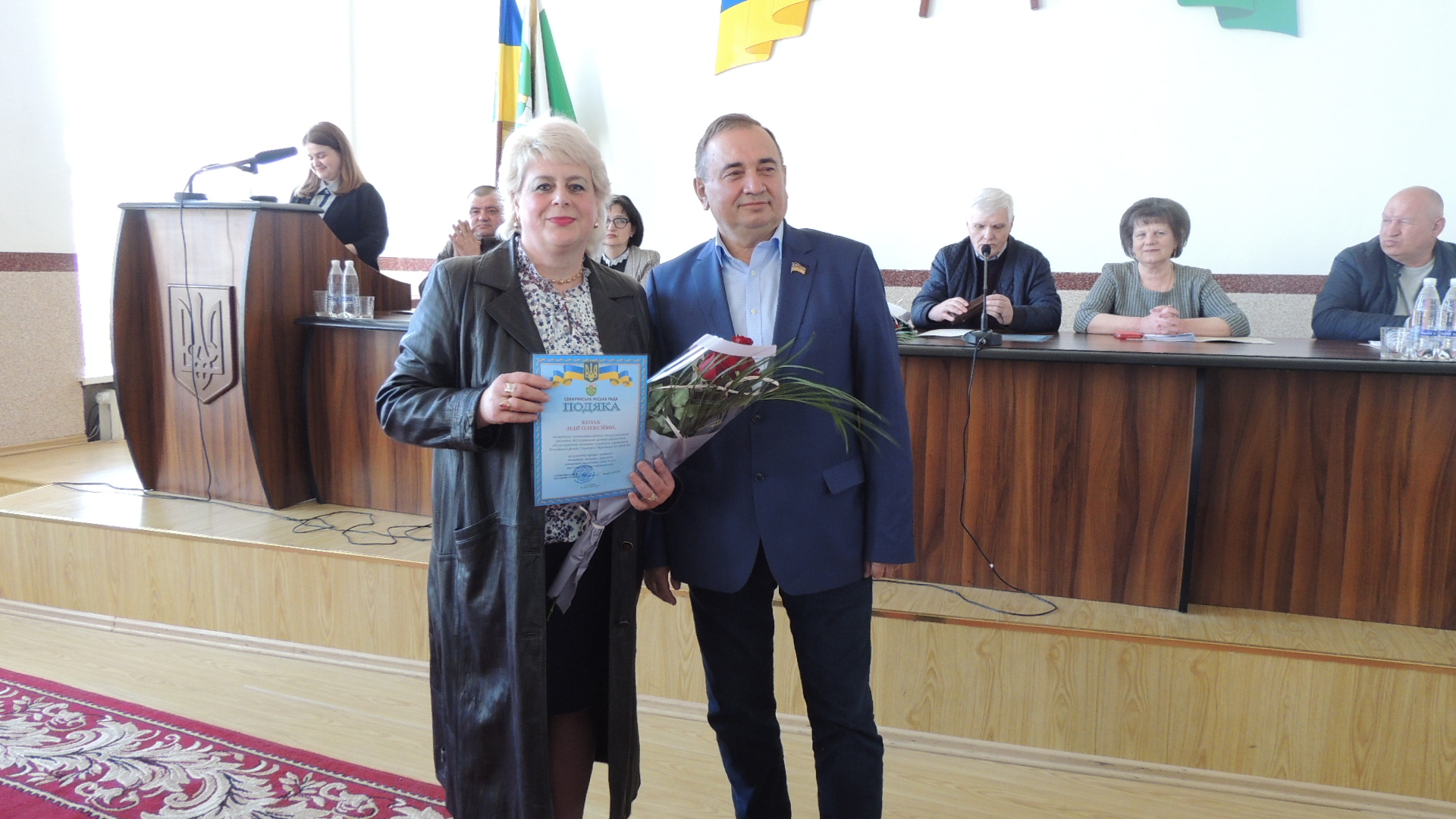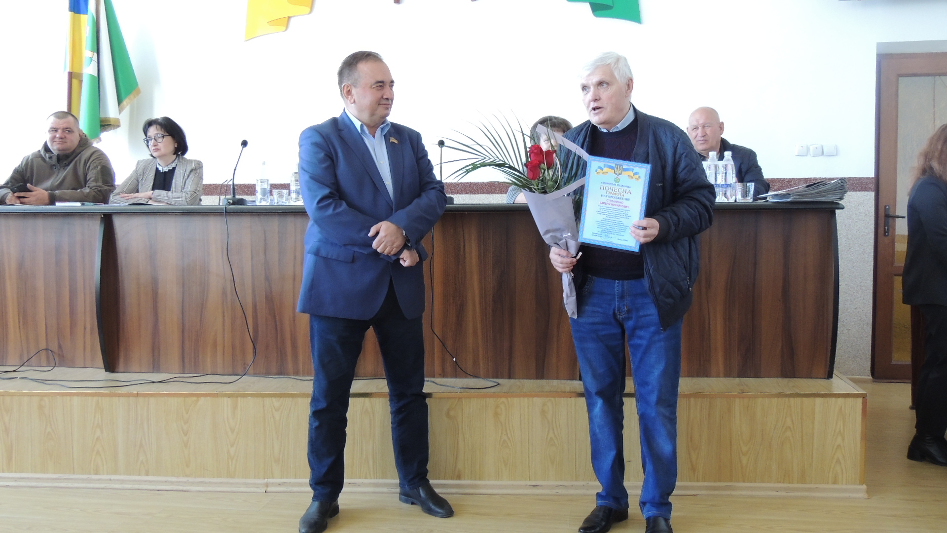 Далі міський голова Василь Козак з нагоди ювілейних днів народжень вручив Почесні грамоти Сокирянської міської ради та подякував за багаторічну сумлінну працю Галині Іванівні Пленгей – директору Сокирянського комунального госпрозрахункового підприємства «Профдезінфекція»; Валерію Михайловичу Степаненку – депутату міської ради та директору опорного закладу «Романковецький ліцей ім. академіка К.Ф. Поповича» та Лідії Олексіївні Козак – заступнику начальника відділу обслуговування громадян №2 управління обслуговування громадян ГУ Пенсійного фонду України в Чернівецькій області.