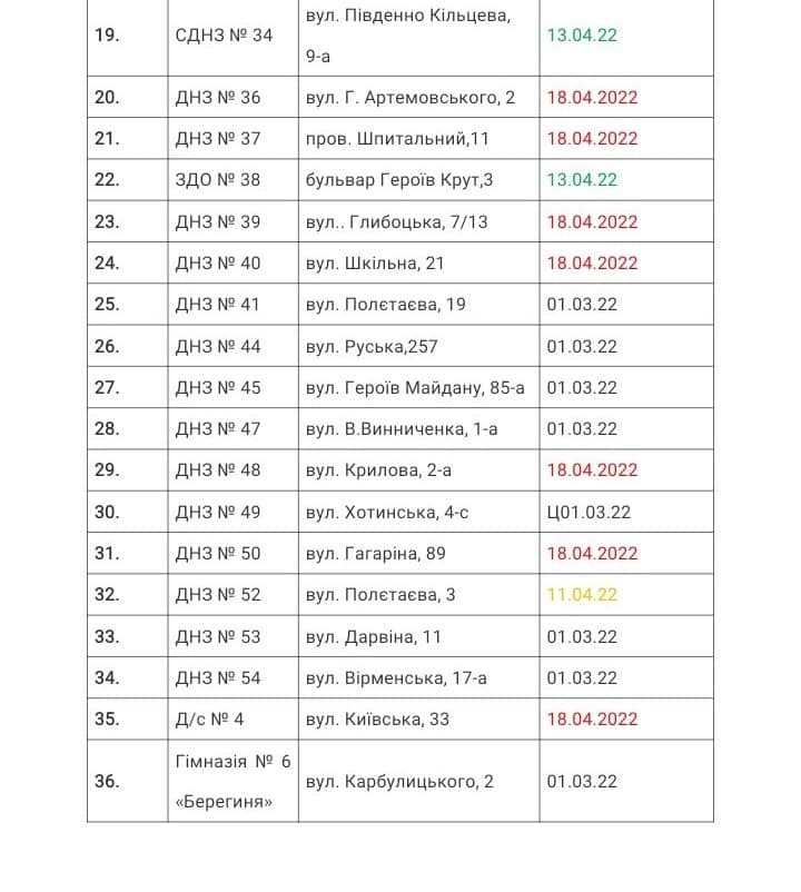 У кожному мікрорайоні міста відкриті чергові заклади дошкільної освіти (ЗДО), які приймають дітей з інших ЗДО, зокрема дітей внутрішньо переміщених осіб.
