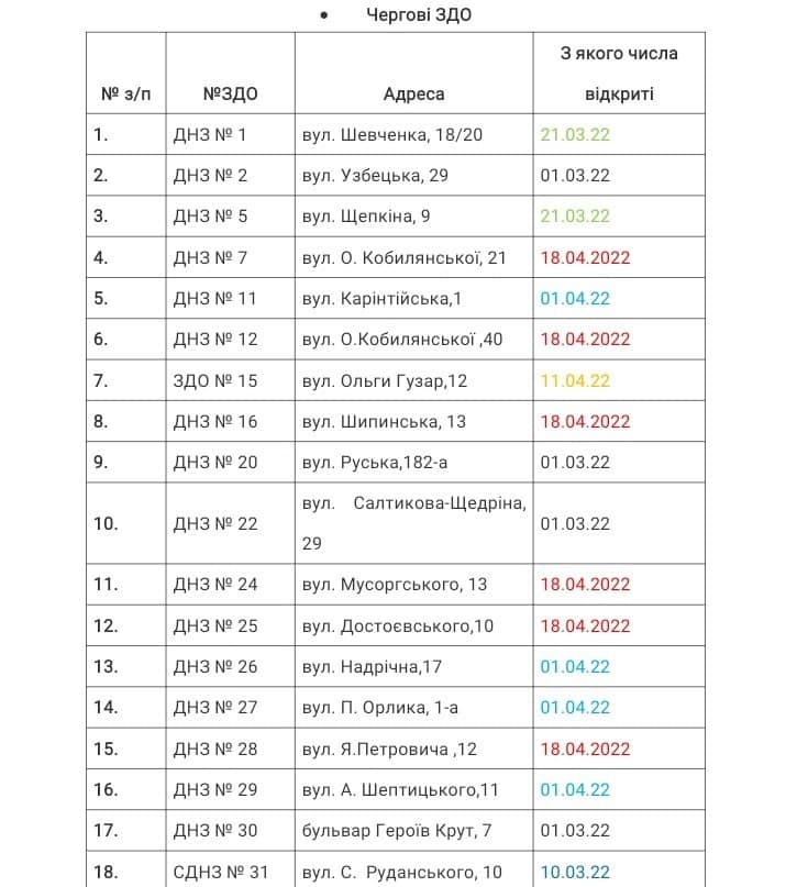 У кожному мікрорайоні міста відкриті чергові заклади дошкільної освіти (ЗДО), які приймають дітей з інших ЗДО, зокрема дітей внутрішньо переміщених осіб.