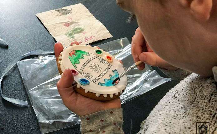 «Щось схоже робила з бабусею ще у Херсоні, ми клали яєчка у воду і таким чином вони ставали кольорові. Бабуся розповідала різні цікаві історії – це було захоплююче. А тут щось таке нове, дуже сподобалося. Я брала пряник, брала фарби, і творила», – розповідає дівчинка Настя.